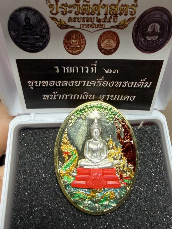 ((วัดสร้าง))เหรียญหลวงพ่อโสธรรุ่นประวัติศาสตร์ครบรอบ 255 ปี วาระพิเศษ เหรียญชุบทองลงยาเครื่องทรงเต็มหน้ากากเงินแท้ ฐานแดง โค้ตเลข 7 ยิงโค้ตกรรมการ พร้อมกล่องเดิม |