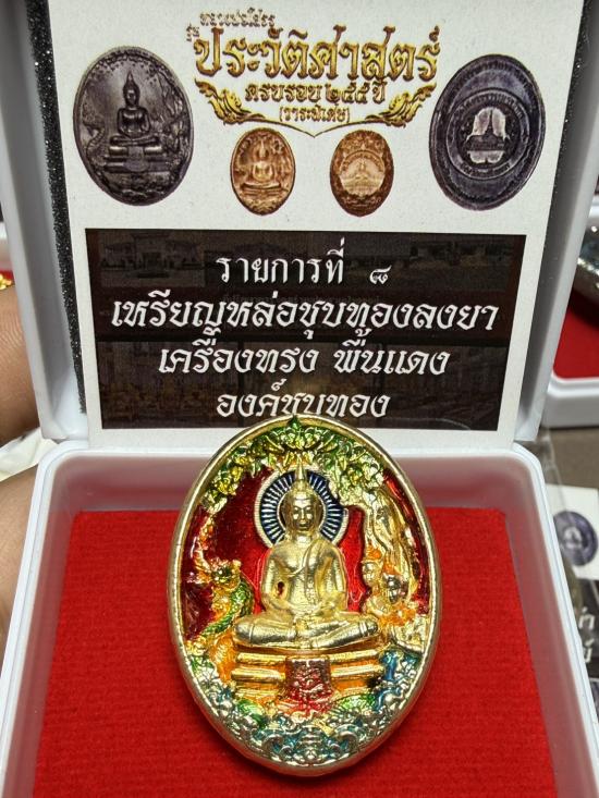 ((วัดสร้าง))เหรียญหลวงพ่อโสธรรุ่นประวัติศาสตร์ครบรอบ 255 ปี วาระพิเศษ เหรียญหล่อชุบทองลงยาแดงเครื่องทรง พื้นแดงองค์ชุบทอง โค้ตเลข 116 พร้อมกล่องเดิม |