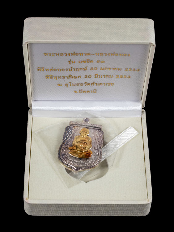 เหรียญหลวงปู่ทวด หลวงพ่อทอง รุ่นแซยิด 93 "เนื้อเงินหน้ากากทองคำหลังทองคำ"