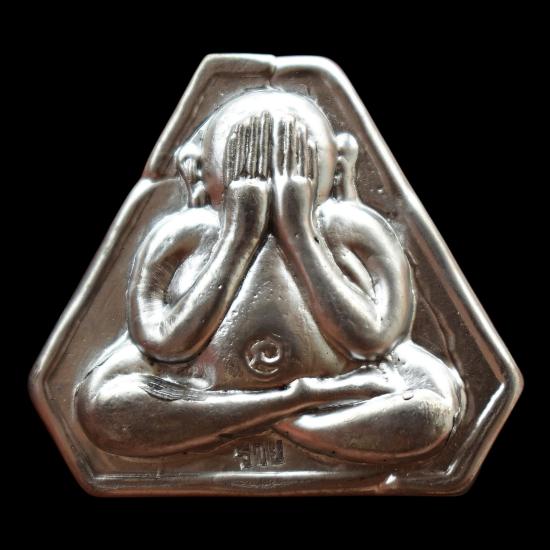 พระปิดตามหากัน เนื้อตะกั่วหล่อ หลังจารยันต์ หลวงพ่อมาโนช วัดบุ่งคล้า นครราชสีมา ปี 2555 มีซองจากวัด |