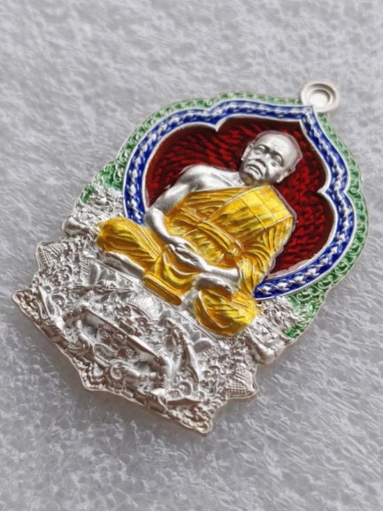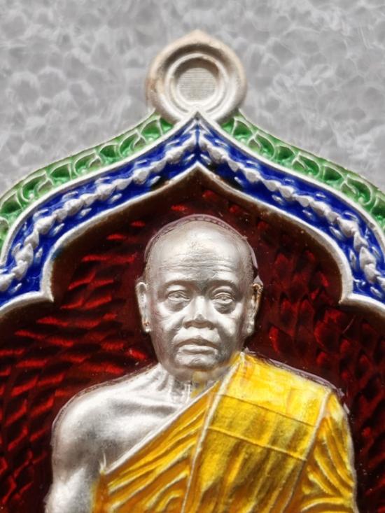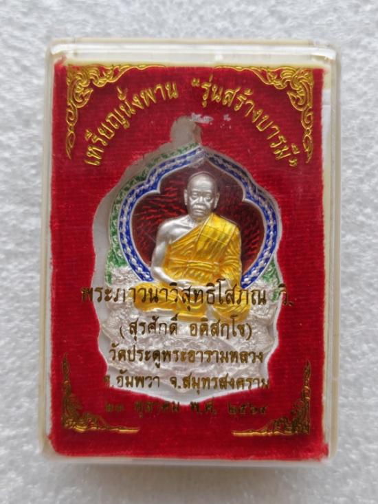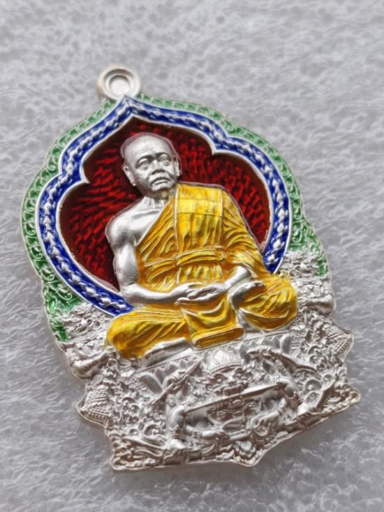 เหรียญนั่งพาน รุ่นสร้างบารมี พระมหาสุรศักดิ์ วัดประดู่พระอารามหลวง จังหวัดสมุทรสงคราม ปี 2564 เนื้อเงินลงยาสีแดง no.193 เลข 3 หลัก พร้อมกล่องเดิมครับ