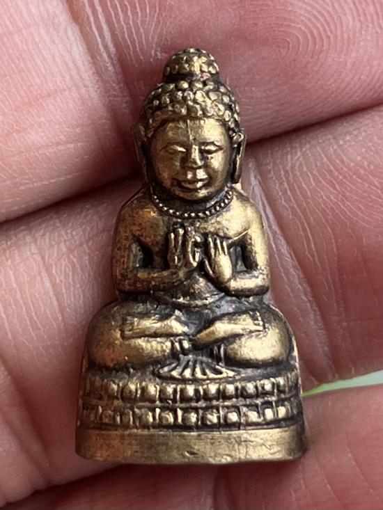 พระชัยวัฒน์ พิมพ์ปั๊มครึ่งซีก ปางดีดน้ำมนต์ หลวงพ่อลี วัดอโศการาม สมุทรปราการ ปี2500 เนื้อทองเหลือง เจอน้อย