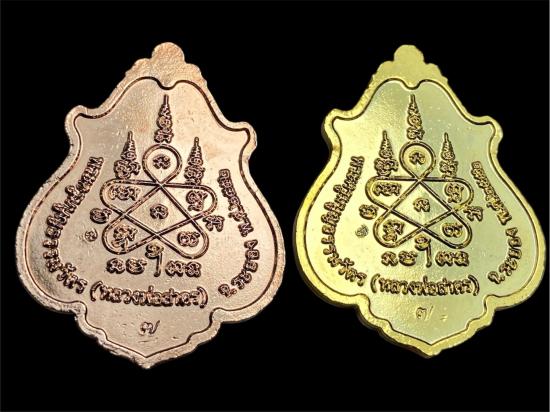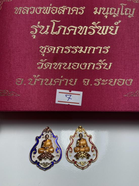 แยกชุดกรรม เลข ๙ ผู้ชนะรับพระ 2 องค์ เหรียญโภคทรัพย์ ลพ สาคร ปี 2552 เนื้อกะไหล่ทอง ลงยาแดง+กะไหล่นาค ลงยาน้ำเงิน หายากมากเพราะสร้างไว้ในเฉพาะในชุดกรรมการที่มีเพียง 300 เท่านั้น เลข 7 มีเพียง 1 เดียว |