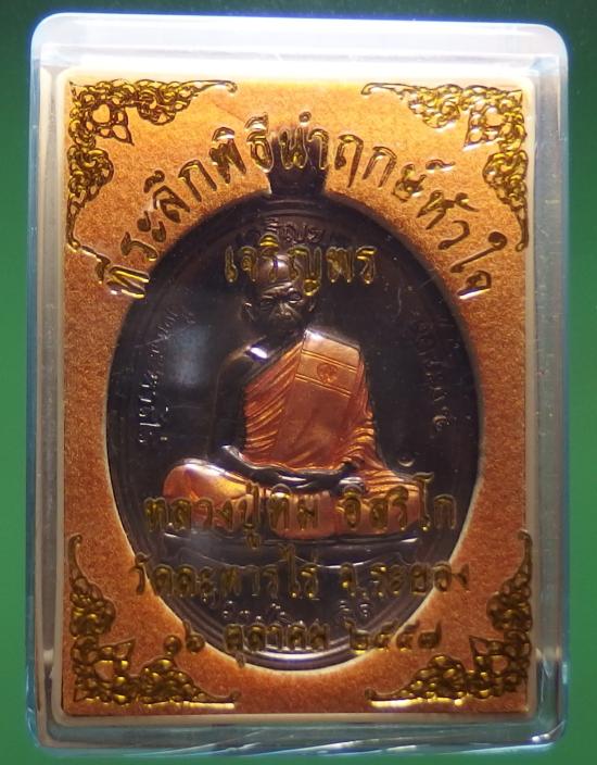 เหรียญเจริญพรบน เนื้อทองแดงลงยา หลวงปู่ทิม วัดละหารไร่ ที่ระลึกพิธีนำฤกษ์หัวใจ ปี 57 จ.ระยอง