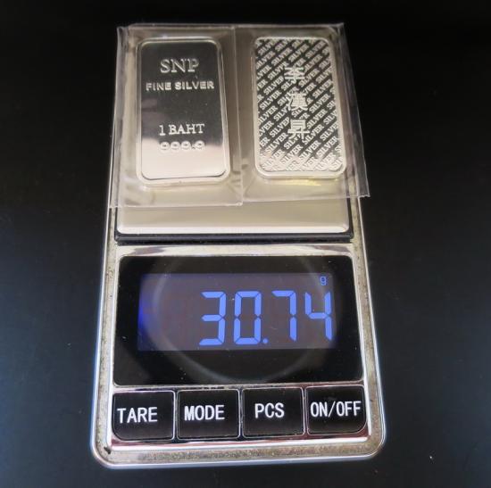เงินแท่ง 999.9% ขนาด 1 บาทจำนวน 2 แท่ง หรือ FINE SILVER 999.9% น้ำหนักรวม 2 บาท ใหม่ๆเลยครับ |