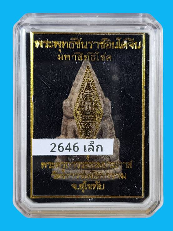 รูปหล่อโบราณพระพุทธชินราชอินโดจีน รุ่นมหาสิทธิโชค เนื้อชนวน พิมพ์เล็ก หมายเลข 2646 สภาพสวยเดิมๆพร้อมกล่องครับ