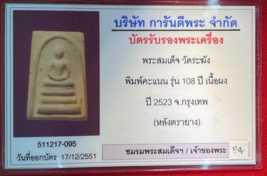 สมเด็จ วัดระฆัง พิมพ์คะแนน รุ่น 108 ปีหลังตรายาง ปี2523