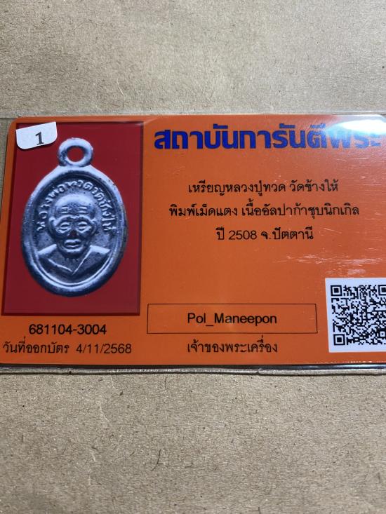 เหรียญเม็ดแตง เนื้ออัลปาก้าชุบนิกเกิล บล็อกไนกี้ หลวงปู่ทวด วัดช้างให้ จ.ปัตตานี ปี 2508