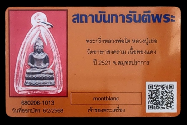 กริ่งหลวงพ่อโตหลังเรียบ หลวงปู่เย่อวัดอาษาสงคราม จ.สมุทรปราการ พ.ศ. ๒๕๒๑ พร้อมบัตร G