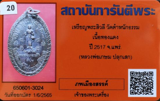 *** วัดใจ 300 แดง *** ( 20 ) เหรียญพระสิวลี วัดตำหนักธรรม เนื้อทองแดง ปี 2517 จ.แพร่ (หลวงพ่อเกษม ปลุกเสก) + บัตรรับรองพระแท้การันตีพระ |