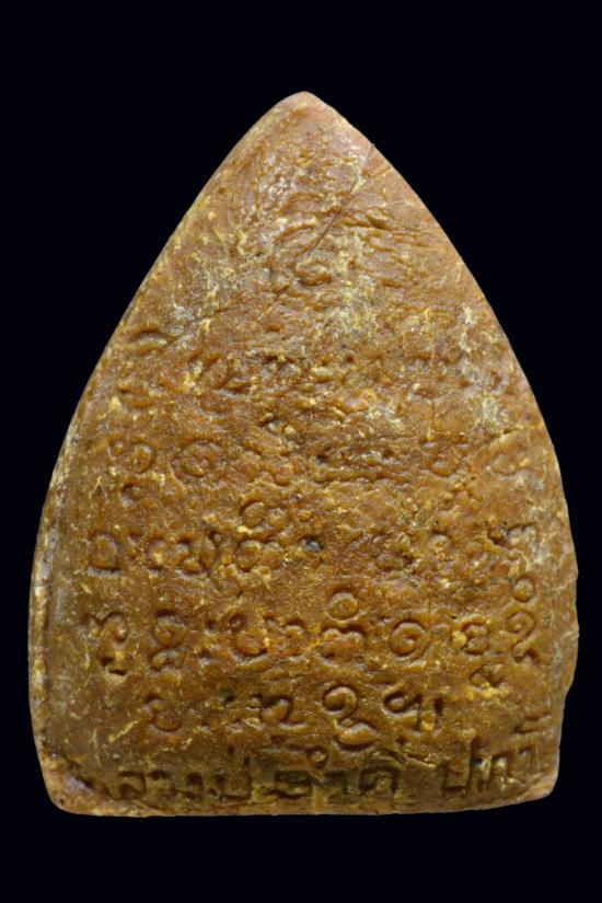พระเนื้อผงรูปเหมือนใบโพธิ์ หลวงปู่คำดี ปภาโส วัดผาปู่ อ.เมือง จ.เลย ปี2517 ผสมเส้นเกศา |