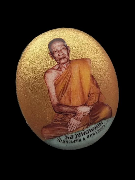 ล็อกเก็ตฉากทอง หลังมวลสาร หลวงพ่อหยอด วัดแก้วเจริญ ไม่ทราบปี ไม่มีหักราน เท่าไหร่เท่านั้น |
