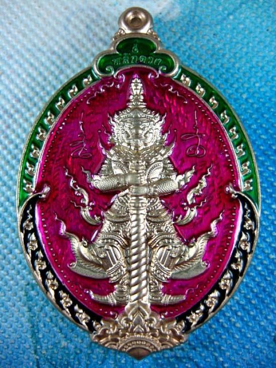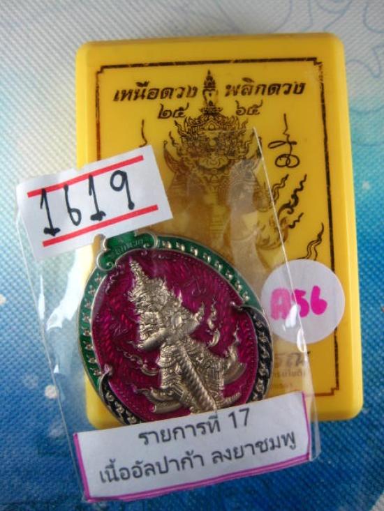 เหรียญท้าวเวสสุวรรณ (เหนือดวง-พลิกดวง) เนื้ออัลปาก้าลงยาชมพู อาจารย์โชติ วัดพุทไธศวรรษ ปี 2565 หมายเลข ๑๖๑๙ กล่องเดิม |