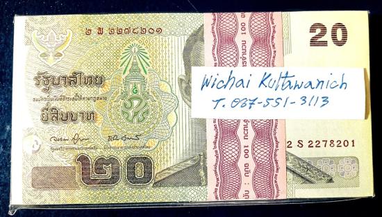 ธนบัตร 20 บาท แบบ 15 หมวดเสริม S หายาก แหนบ 100 ใบเรียง
