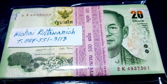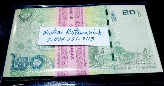 ธนบัตร 20 บาท แบบ 16.5 แหนบ 100 ใบเรียง เลขสวย มีเลขกระจกในชุด