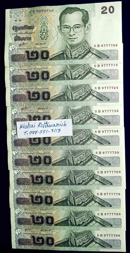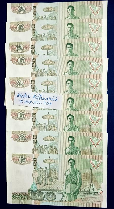 ชื่อพระเครื่อง ธนบัตร 20 บาทแบบ 15 ชุด 9หน้า-9หลัง เลขสวย