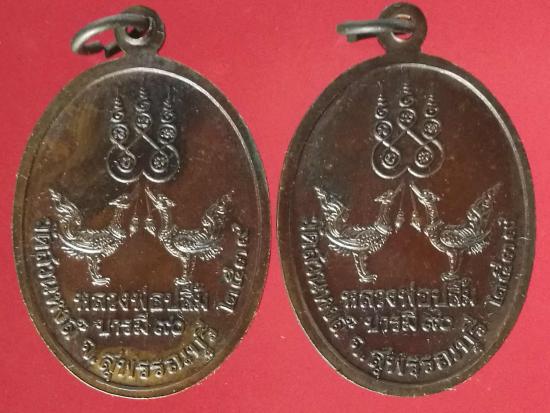 ชื่อพระเครื่อง เหรียญบารมี ๙๐ หลวงพ่อปลื้ม วัดสวนหงส์ จ.สุพรรณบุรี ปี ๒๕๓๙ เนื้อทองแดง ตอกโค๊ตรูปตัว"หงส์" 2 เหรียญ