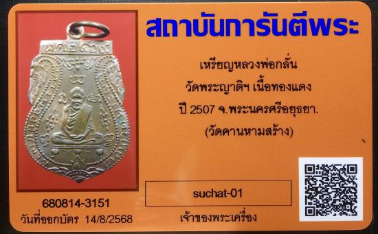 เหรียญหลวงพ่อกลั่น วัดพระญาติฯ เนื้อทองแดง ปี 2507 จ.พระนครศีอยุธยา วัดคานหามสร้าง