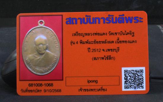 เหรียญหลวงพ่อแดง รุ่น 4 พิมพ์มะย้อยหลังผด เนื้อทองแดง เดิมๆ คลาสิค พร้อมบัตร