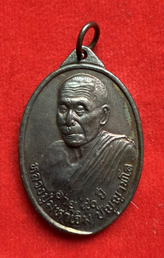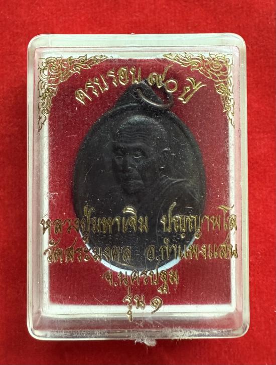 2500 เหรียญรุ่น 1 หลวงปู่มหาเจิม วัดสระมงคล จ.นครปฐม อายุครบ 90 ปี เพื้อทองแดงหลังติดเส้นเกศา