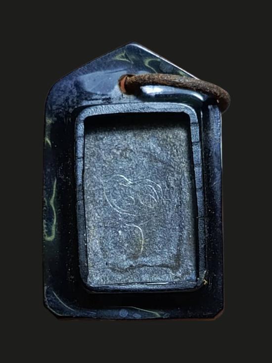 เหรียญหล่อเนื้อโลหะ เลี่ยมกรอบพลาสติกสีดำห่วงสนิมเก่าๆ เคาะเดียวแดง |