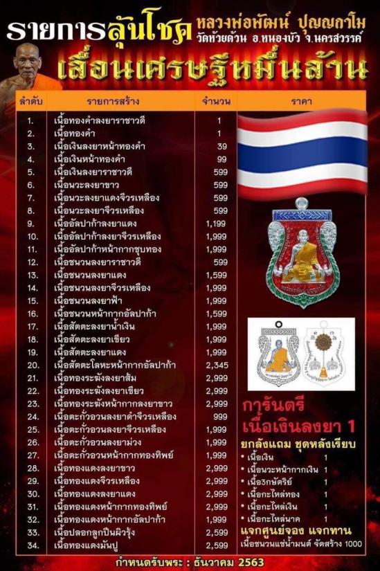 !!!! เคาะ 10 บาท 3 ลุ้น !!!! เหรียญเสมาเลื่อนเศรษฐีหมื่นล้าน หลวงพ่อพัฒน์ วัดห้วยด้วน จ.นครสวรรค์ ปี 2563 ซีลเดิม ลุ้นเนื้อ ลุ้นเลข |
