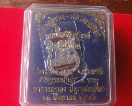 +++ หลวงปู่ทวด เนื้อเงินลงยา สีธงชาติ หน้าเลื่อน หลังหลังพ่อทอง รุ่น อริยะทรัพย์ เบาๆๆ+++