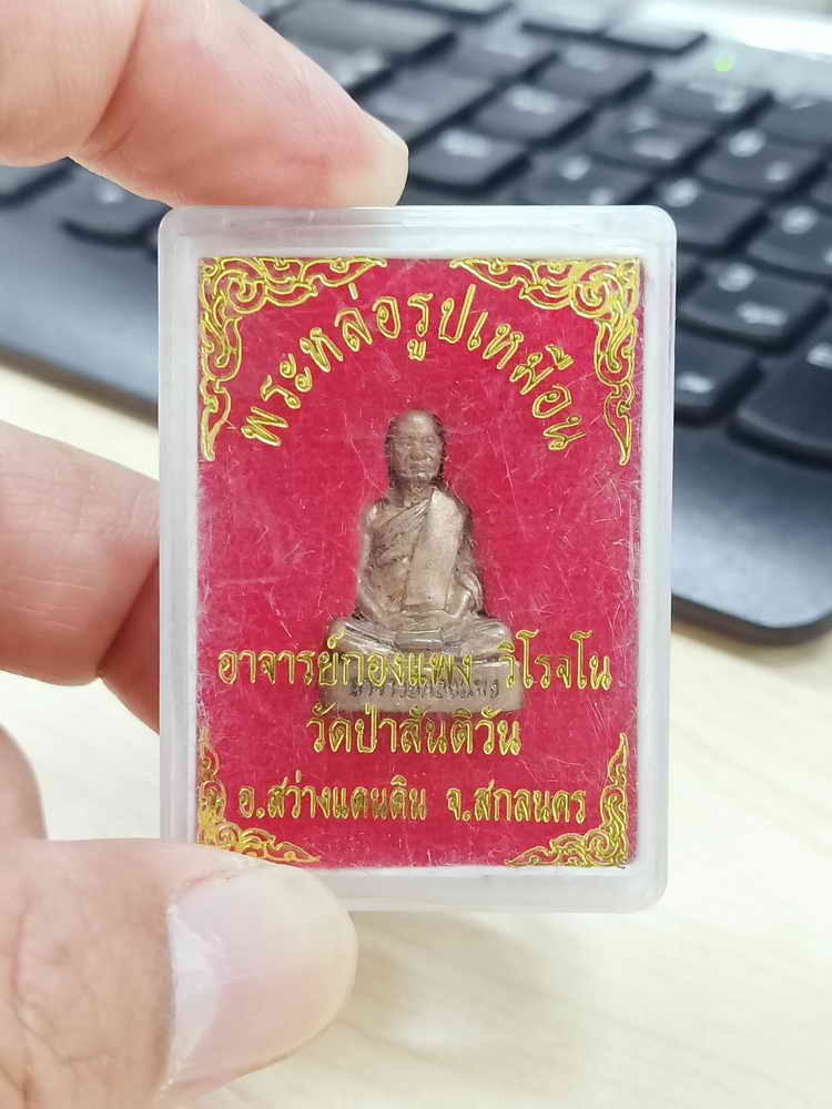 วัดใจ 100 พระหล่อรูปเหมือน อาจารย์กองแพง วิโรจโน วัดป่าสันติวัน สว่างแดนดิน สกลนคร หมายเลข 246 กล่องเดิม |