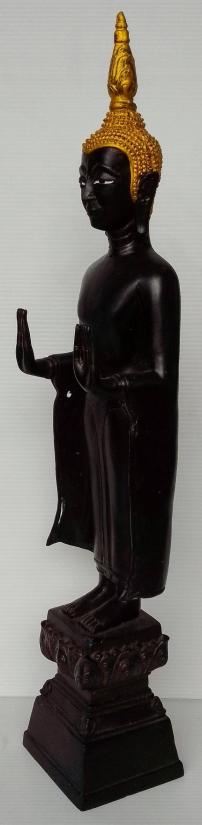 รายละเอียด พระบูชาปางห้ามสมุทร เนื้อโลหะ ขนาดฐานกว้าง 3.5 * 3.5 นิ้ว สูง 20 นิ้ว