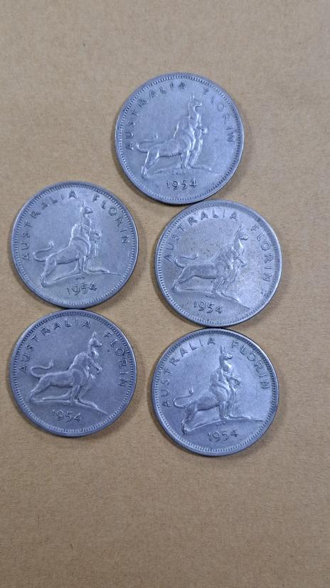 เหรียญ1 ฟลอริน - พระบรมฉายาลักษณ์สมเด็จพระราชินีนาถเอลิซาเบธที่ 2 พระองค์แรก - การเสด็จเยือนของราชวงศ์ เนื้อเงิน50% ทั้งหมด5เหรียญ ชุดสุดท้าย!!!!
