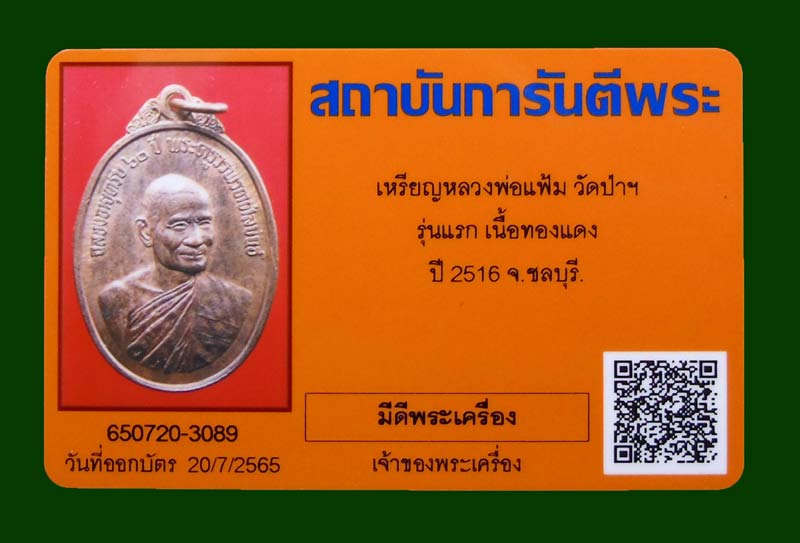!! เหรียญรุ่นแรก หลวงพ่อแฟ้ม วัดป่า ปี2516 (หลวงปู่ทิม-หลวงปู่คร่ำ เสก) + บัตรพระแท้ |