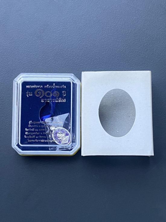 เม็ดแตงหลวงปู่ทวด อาจารย์หลังทิม รุ่น101ปีเนื้อเงินลงยาม่วง |