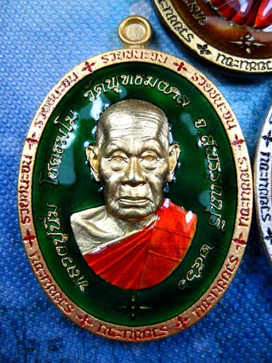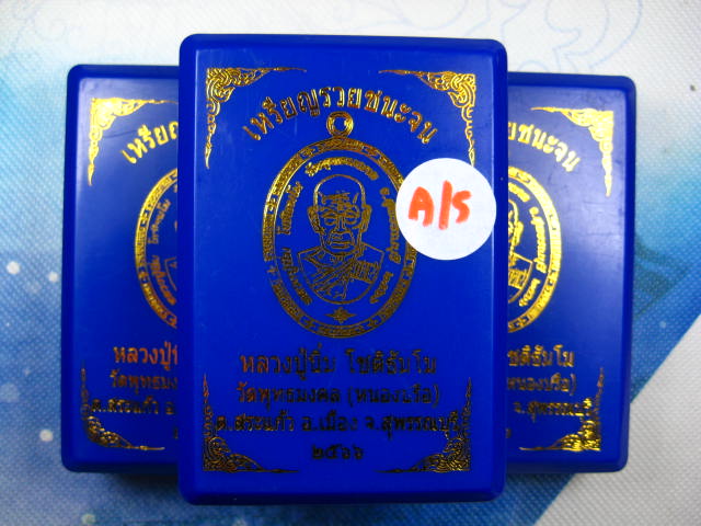 เหรียญรุ่นรวยชนะจน หลวงปู่นิ่ม โชติธัมโม วัดพุทธมงคล จ.สุพรรณบุรี 3 เหรียญ 3 เนื้อ ลงยา (---A15---) |