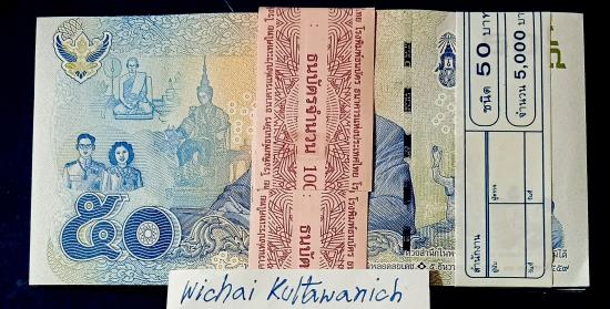 ธนบัตร 50 บาท แบบ 16.5 แหนบ 100 ใบเรียง เลขสวย มีเลขกระจกในชุด