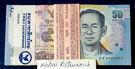 ธนบัตร 50 บาท แบบ 16.5 แหนบ 100 ใบเรียง หมวด 9K เลขสวย มีเลขกระจกในชุด