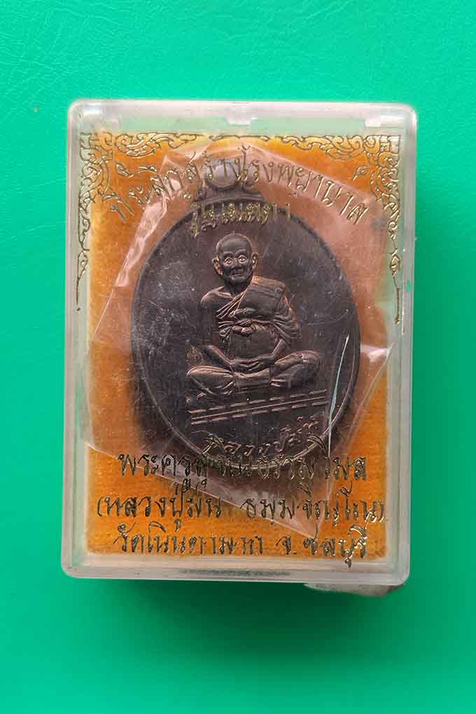 เหรียญนั่งเต็มองค์ รูปไข่ เนื้อนวโลหะ รุ่น เมตตา หลวงปู่ม่น ธัมมจิณโณ วัดเนินตามาก พศ.2537 หมายเลข 13776 กล่องเดิม |