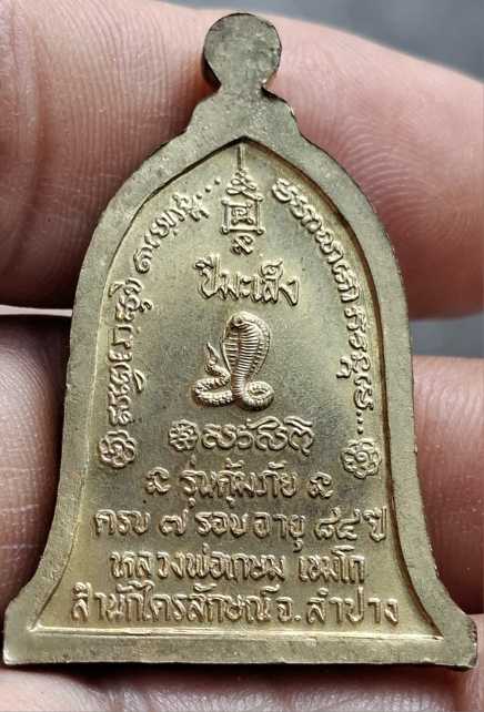 เหรียญระฆังรุ่น "คุ้มภัย" ประจำปีมะเส็ง หลวงพ่อเกษม เขมโก จ.ลำปาง เนื้อทองเหลือง ครบ ๗ รอบ อายุ ๘๔ ปี เหรียญหนา สภาพสวยผิวเดิมๆ |