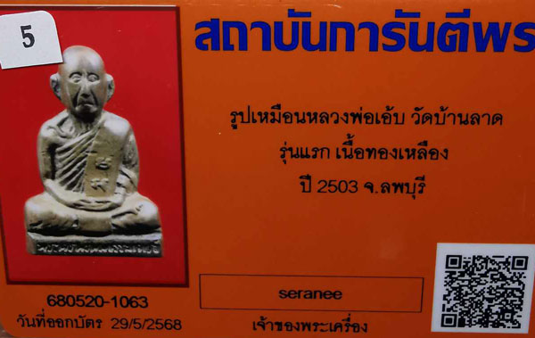 รูปเหมือนหลวงพ่อเอ้บ วัดบ้านลาด รุ่นแรก เนื้อทองเหลือง กริ่งดัง ปี2503 จ.ลพบุรี + บัตรG-pra สภาพเดิมค่ะ สภาพตามรูปทุกประการค่ะ