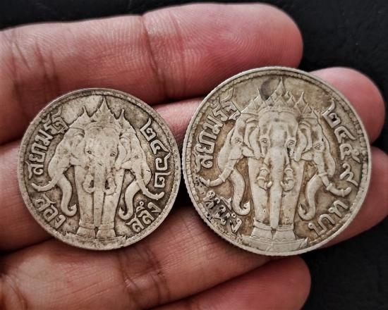 เหรียญเงินรัชกาลที่ 6 หลังช้างสามเศียร 1 บาท พ.ศ.2459 และ 2 สลึง 2462 รวม 2 เหรียญ
