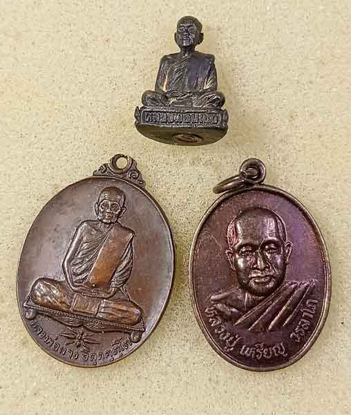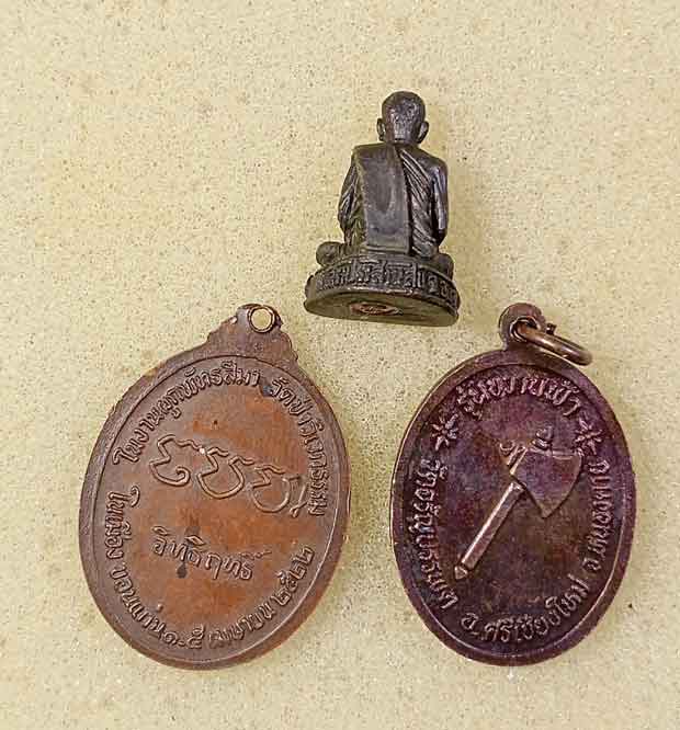 รูปหล่อหลวงพ่อบุญมี วัดสระประสานสุข ปี 36 + เหรียญหลวงพ่อผาง ปี 22 + เหรียญ รุ่นขวานฟ้า หลวงปู่เหรียญ วัดอรัญบรรพต หนองคาย |
