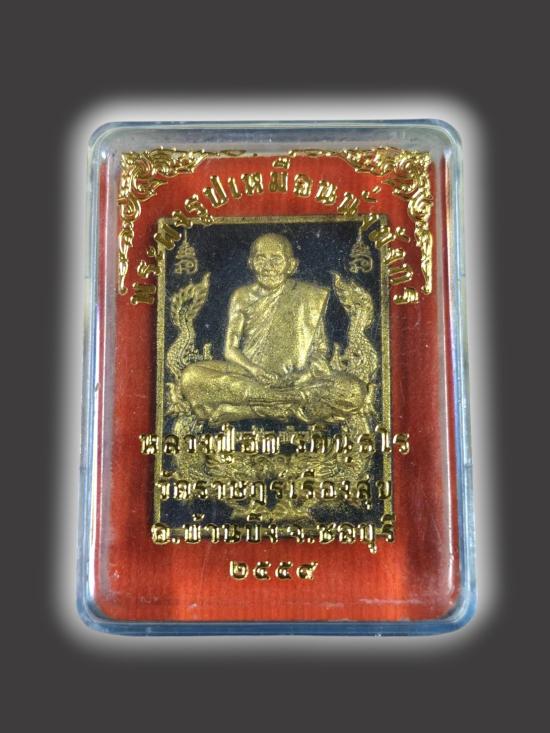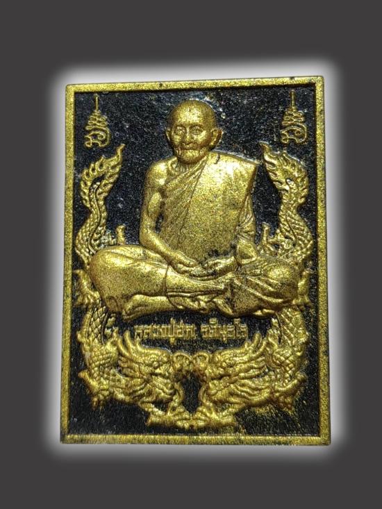 A3208.พระผงรูปเหมือนเนื้อกะลาตาเดียวปัดทองมังกรคู่หลังสำเภาทอง กล่องเดิม เคาะเดียวเเดง |