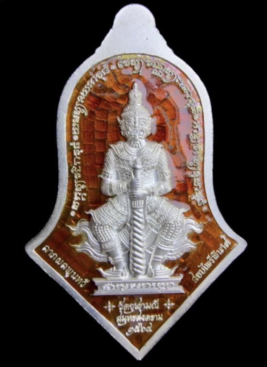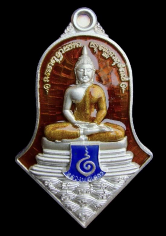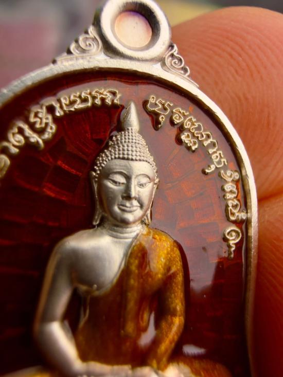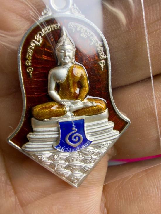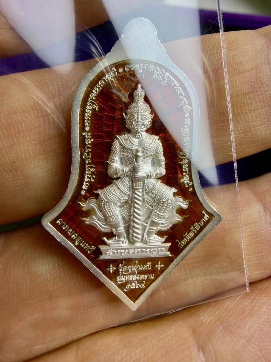 เหรียญจำปีหลวงพ่อโสธร หลังท้าวเวสสุวรรณ รุ่นสยบไพรีพินาศ หลวงพ่ออิฏฐ์ วัดจุฬามณี พิมพ์จำปีใหญ่ เนื้อเงินลงยาแดง หมายเลยสามหลัก ๙๕๔ กล่องครบครับ