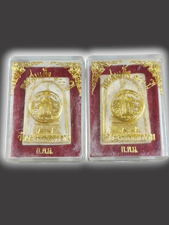 A3216.ชุด 2 องค์ พระสมเด็จ 100 ปี หลังระฆัง วัดระฆัง มีกล่อง เคาะเดียวเเดง |