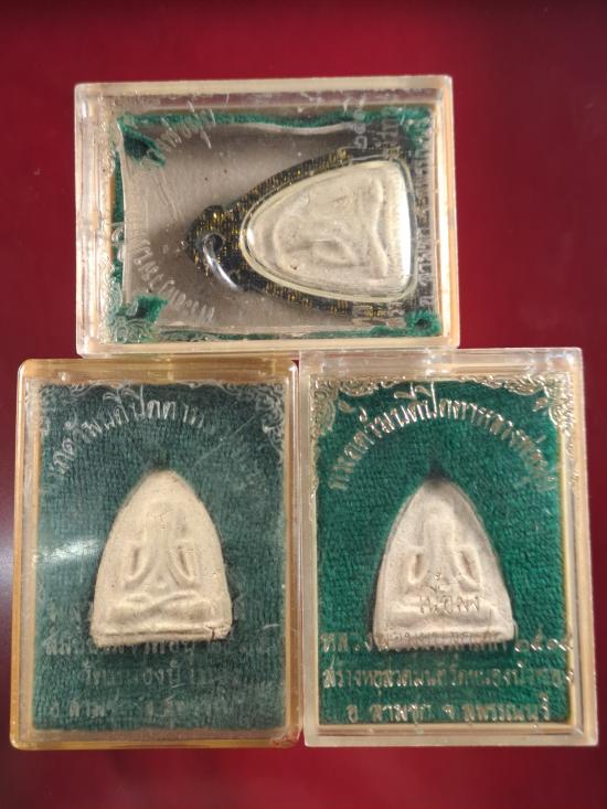 พระปิดตา หลังกด " มุ่ย " หลวงพ่อมุ่ย วัดดอนไร่ ออก วัดหนองบัวทอง 3 องค์ กล่องเดิม ๆ |