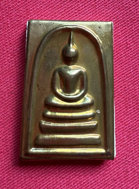 สมเด็จวัดระฆังพิมพ์พระประธาน มีเงิน - มีทอง พิมพ์อกร่อง หน้ากากทองเหลือง หลังแผ่นหัวใจพระคาถาชินบัญชร เนื้อทองเหลือง วัดอินทรวิหาร ปี2552
