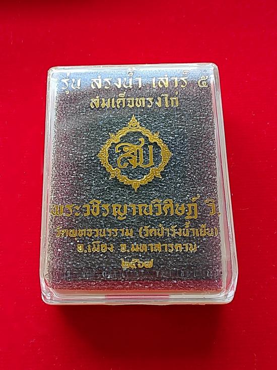 พระสมเด็จทรงไก่ รุ่น สรงน้ำ เสาร์ ๕ พระอาจารย์สุริยันต์ โฆสปัญโญ วัดป่าวังน้ำเย็น จ.มหาสารคาม ปี๖๗ เนื้อดินเผาอุดมวลสาร โค๊ต รวย เลข ๑๐๔๖ พระสวยเดิม ***องค์นี้เนื้อโซนสีเทาสวย หายาก พร้อมกล่องเดิมครับ