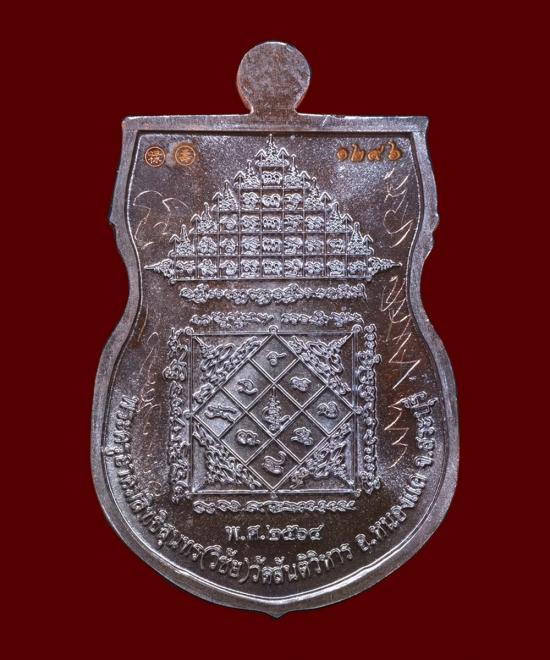 เหรียญหลวงพ่อสำเร็จศักดิ์สิทธิ์ รุ่นสำเร็จสมปรารถนา เนื้อนวะหน้ากากเงิน พระครูปลัดวิชัย วัดสันติวิหาร สระบุรี แดงเคาะแรก