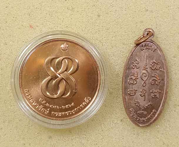 ชื่อพระเครื่อง เหรียญพระคลัง ในพระคลังมหาสมบัติ 88 ปี กรมธนารักษ์ + เหรียญพระพุทธสัมฤทธิ์รุ่งโรจน์ เทพประทานพร วัดสุขกร สมุทรปราการ ปี56