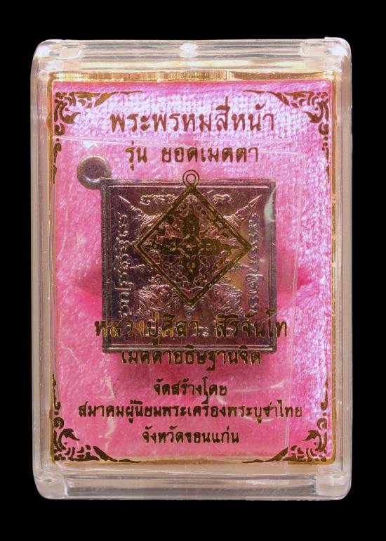 "วัดใจ แดง100" เหรียญพระพรหมสี่หน้า รุ่นยอดเมตตา หลวงปู่ศิลา สิริจันโท เนื้อทองแดงผิวรุ้ง หมายเลข ๑๖๗๕ |