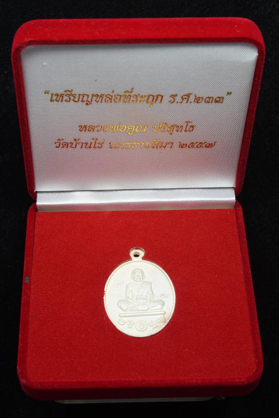 เหรียญหล่อหลงงพ่อคูณ รุ่นที่ระฤก ร.ศ.๒๓๓ เนื้อเงิน สภาพสวยพร้อมกล่องเดิมๆ